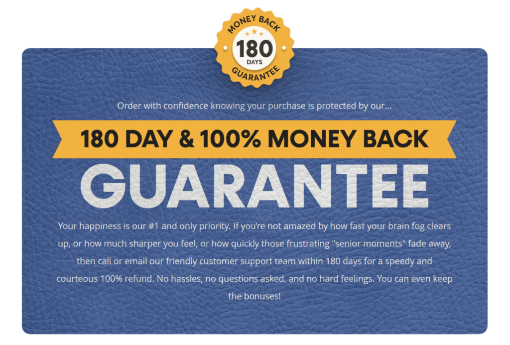Brain Savior is backed by a 180-day money-back guarantee for peace of mind. If you are not satisfied for any reason within the guarantee period, you can request a refund. No questions asked. So why not try it today!